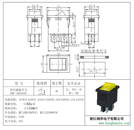 帶燈蹺板開關(guān)KDC-A05-BD5