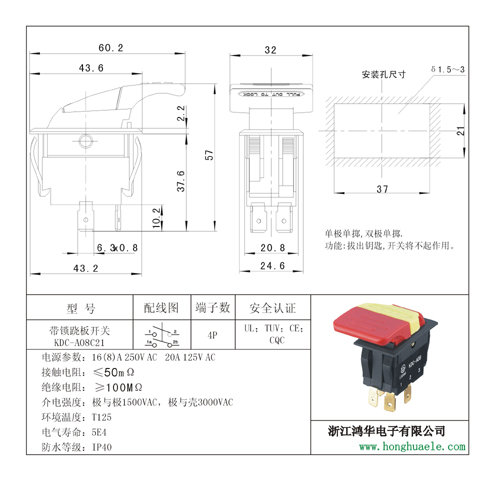 帶鎖蹺板開(kāi)關(guān)KDC-A08C21