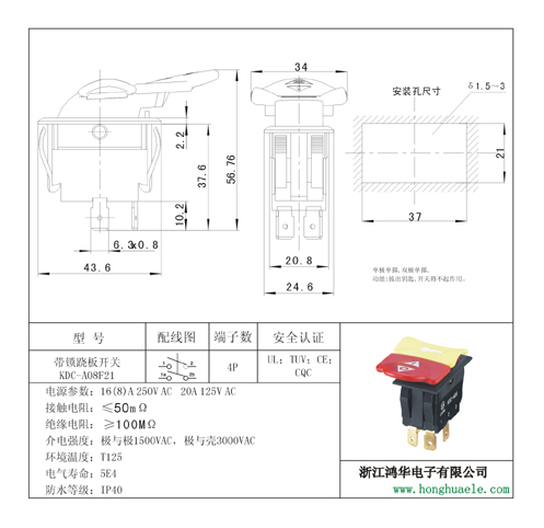 帶鎖蹺板開關KDC-A08F21