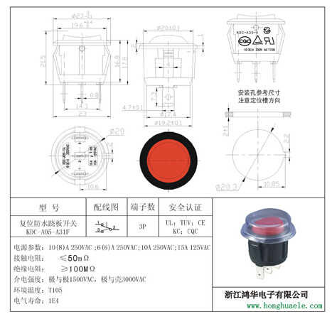 復(fù)位防水開關(guān)KDC-A05-A31F