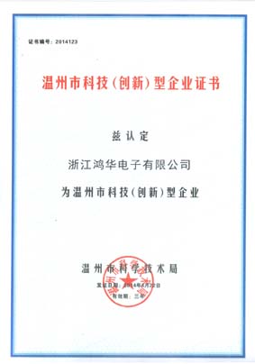 2014年4月浙江鴻華電子取得溫州市科技創(chuàng)新證書