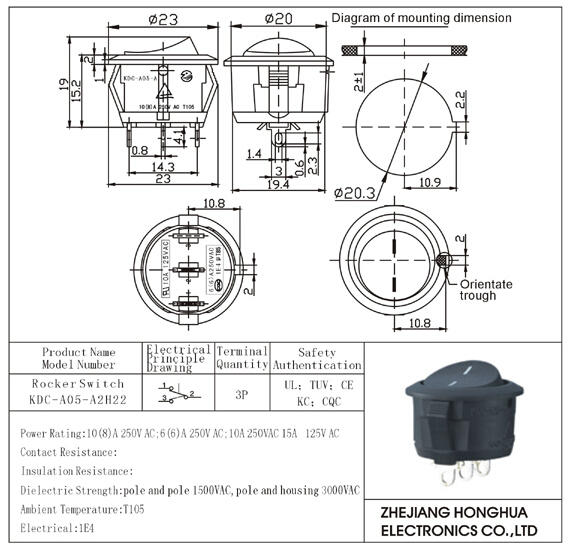 - Rocker switch with waterproof KDC-A05-121BB14F1