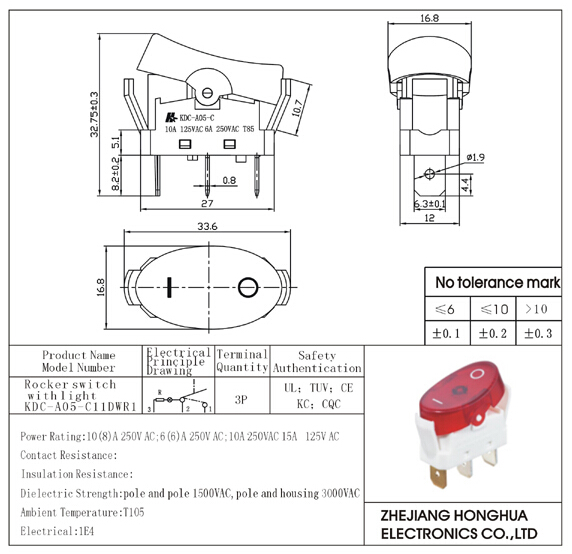 KDC-A05-C11DWR1 Rocker Switch Withlight