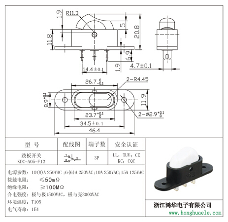 - Rocker switch with waterproof KDC-A05-121BB14F1