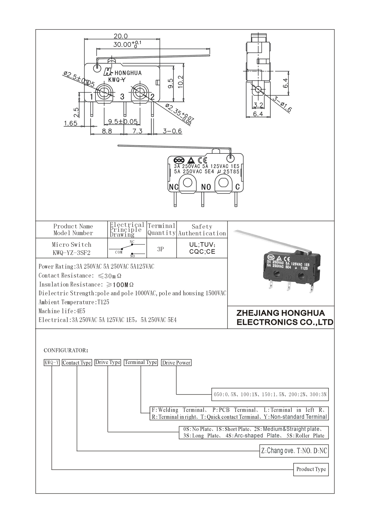 KWQ-YZ-3SF2 Micro Switch
