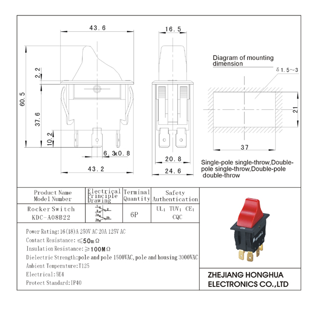 - Rocker switch with waterproof KDC-A05-B11DBRF