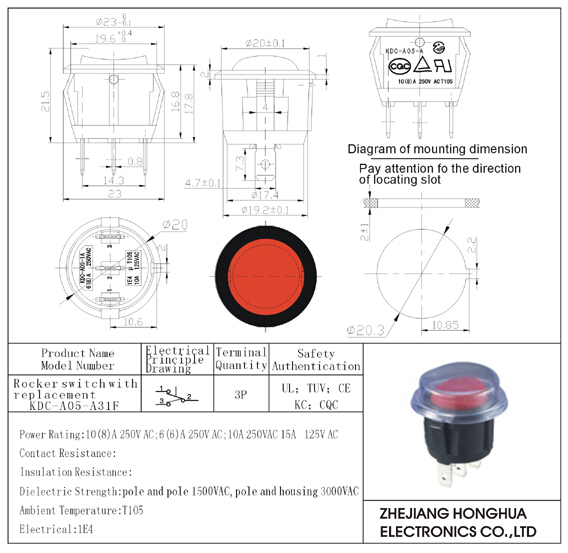 KDC-A05-A31F Rocker switch with replacement
