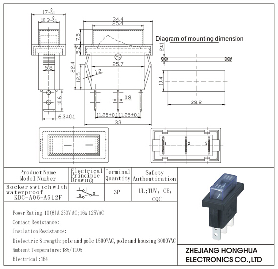 KDC-A06-A512F Rocker switch with waterproof